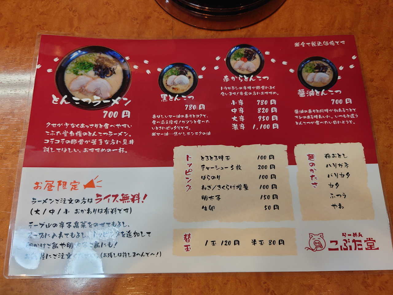 豚骨ラーメンの特徴でもある麺の硬さも、呼び方が書いてあるので安心ですね。