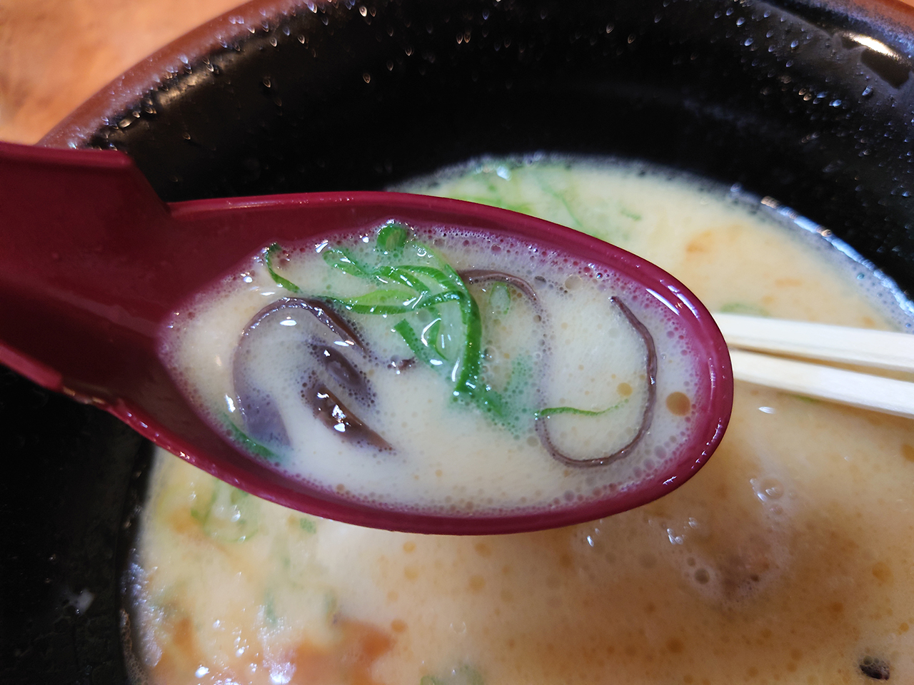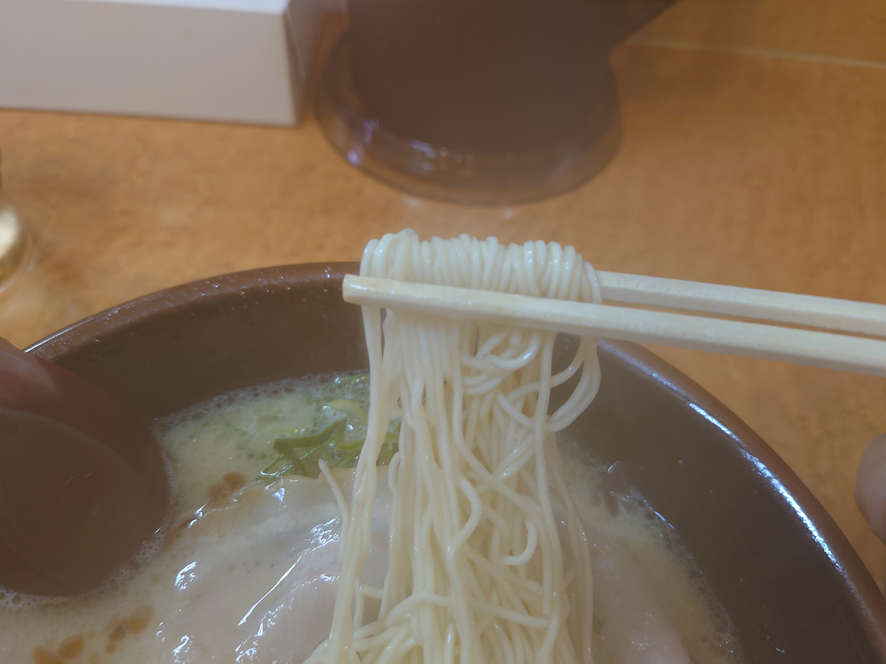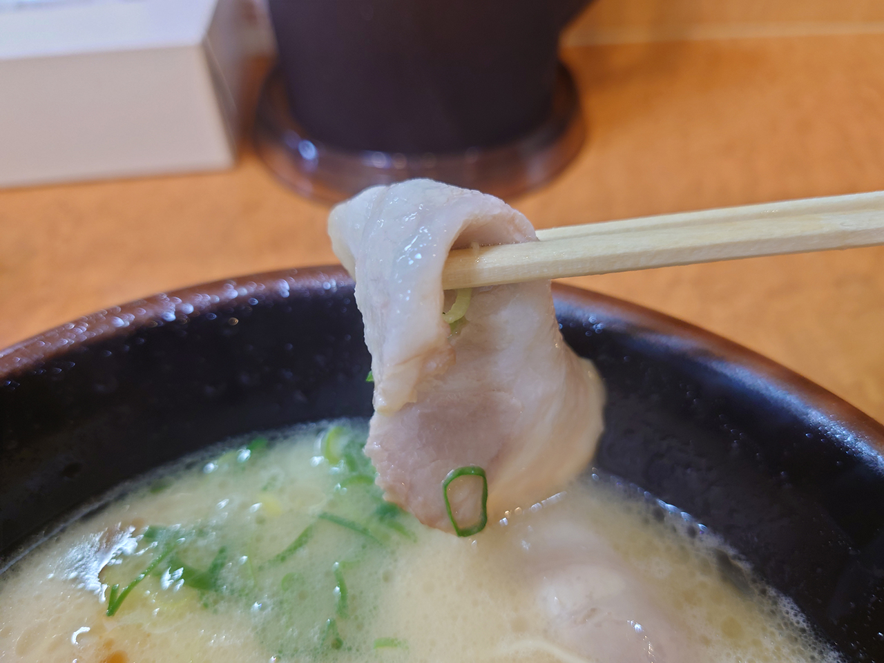 スープは豚骨独特のうまみはそのままに、しかして臭みが感じられない丁寧な処理を思わせる味わいです。