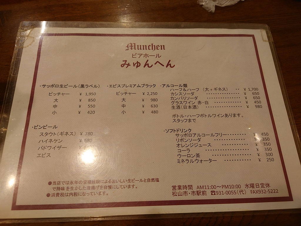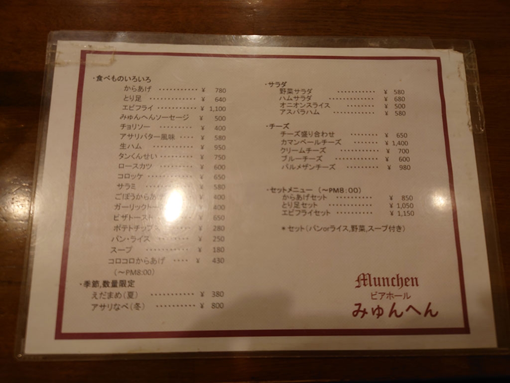 ちなみに「みゅんへん」はビアホールとはいえ、ナイフとフォークではなく、お箸で食べるスタイルなのでなんとなく安心感もあります。