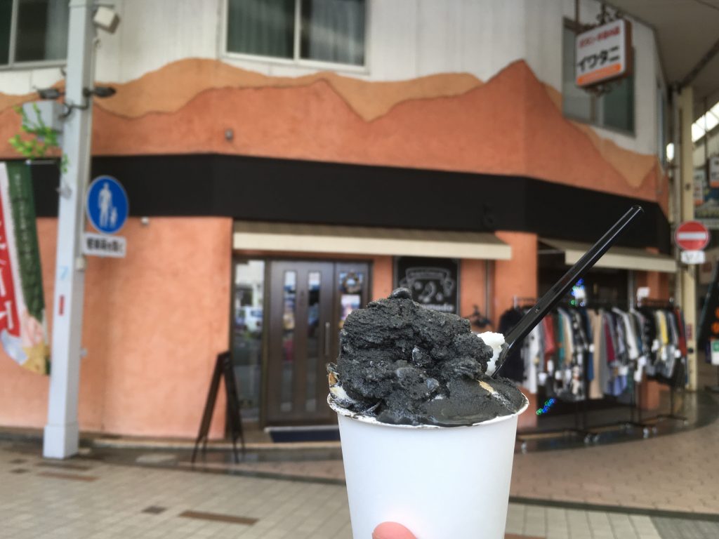 八幡浜の黒い商店街角で見つけたジェラート!洋服屋「Acommodo」(アコモド)の「黒いジェラート」が濃厚だったよ!