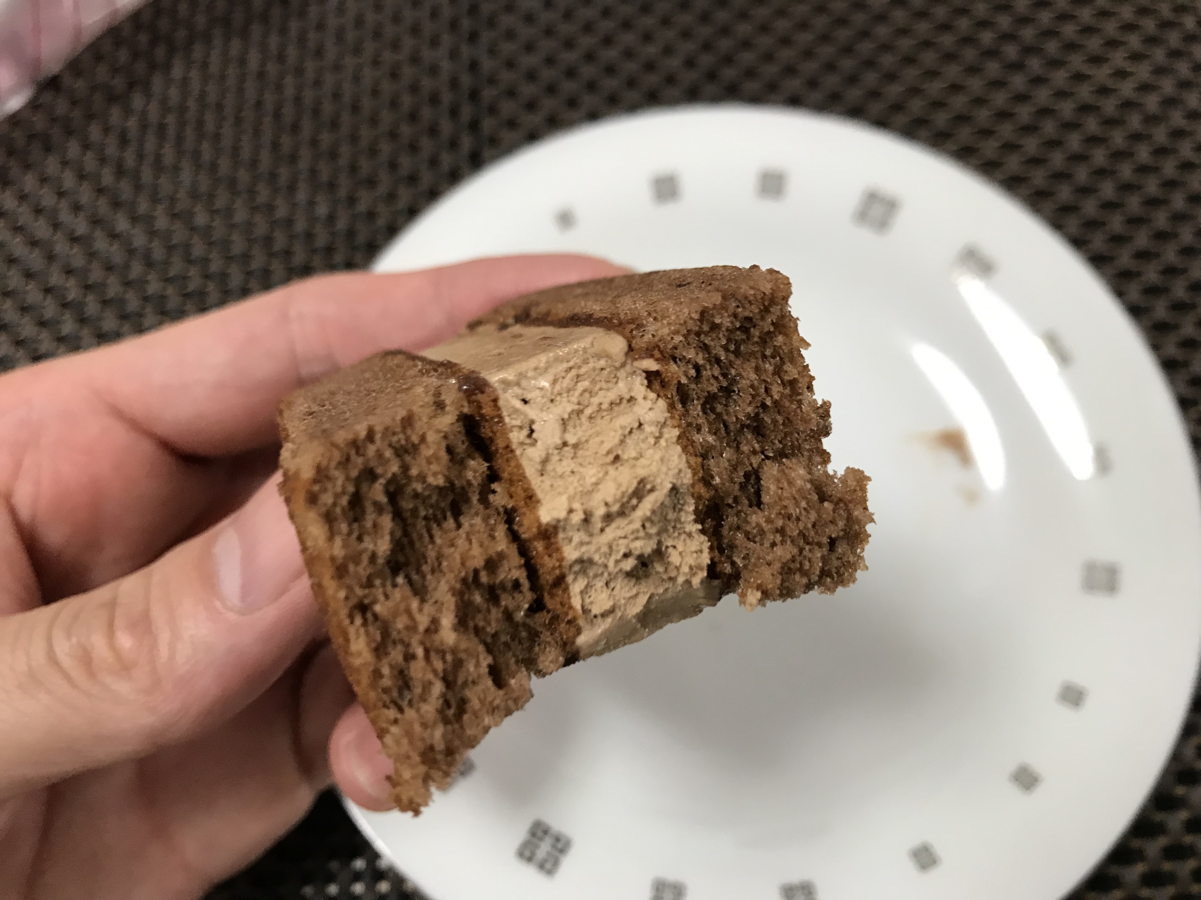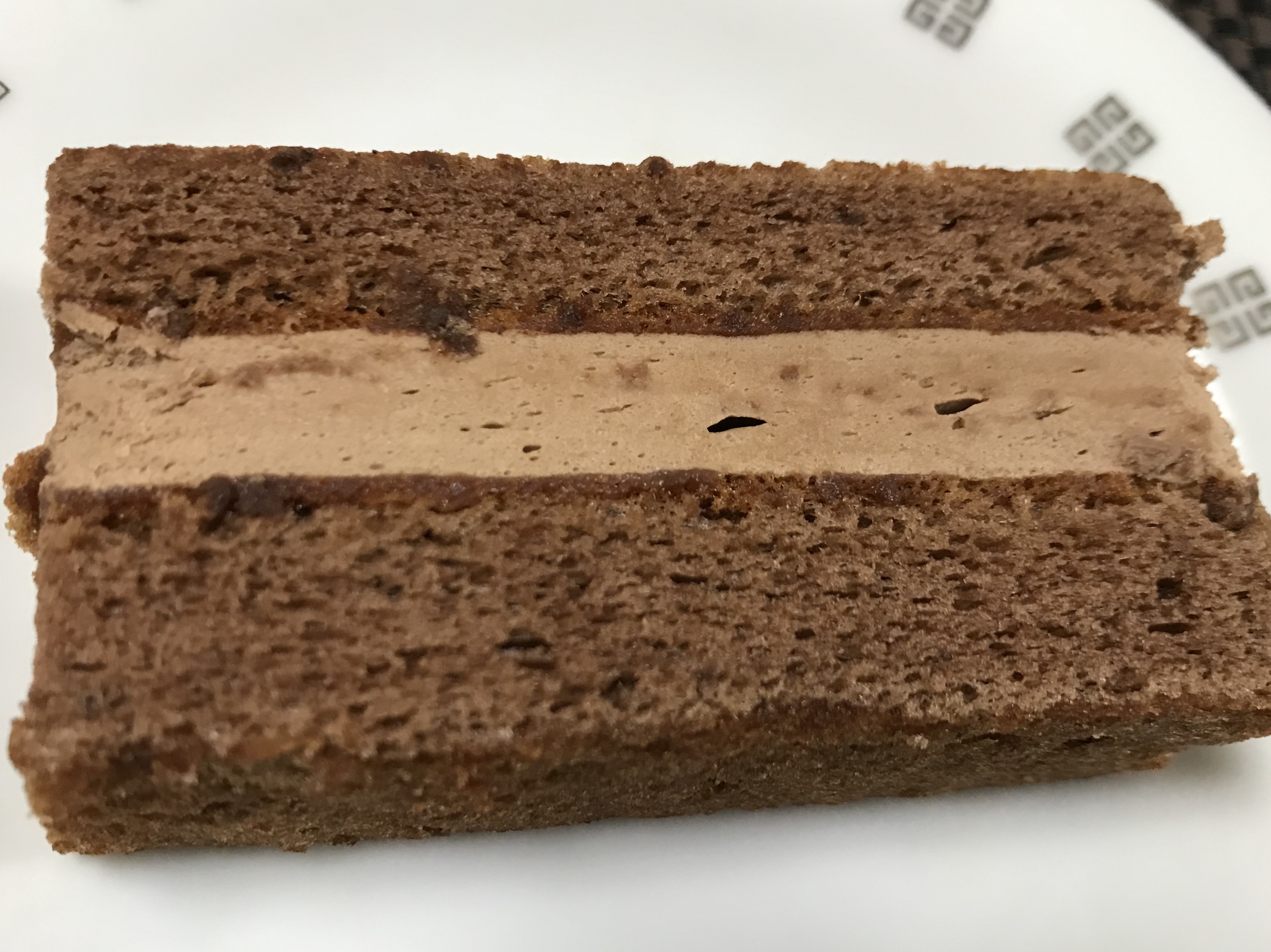 中はこんな感じ。ココアのスポンジでチョコクリームを挟んでいます。