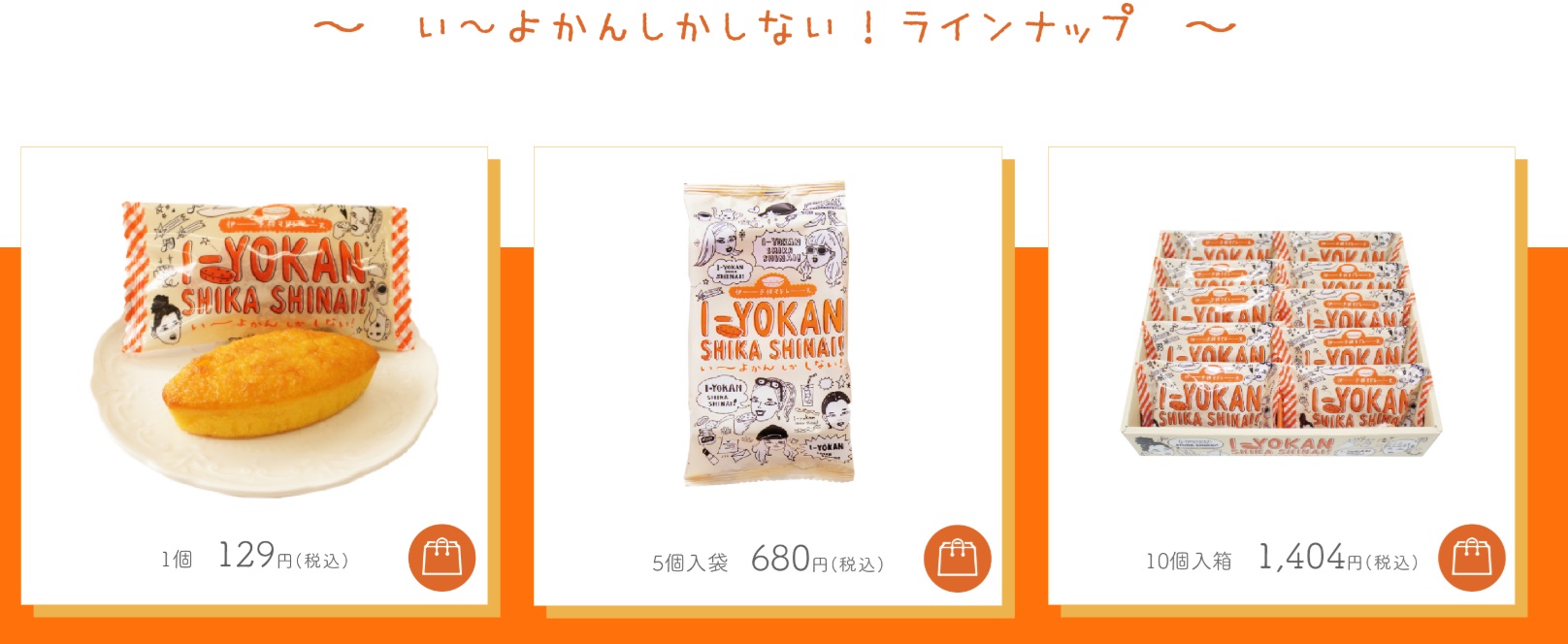 「一六タルト」で有名な、一六本舗さんの新商品「い〜よかん しか しない!」なんともインパクトのある名前とパッケージ。