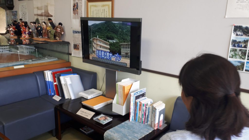 学芸員の高島さんにガイド案内されて、まずは、町見郷土館の開館時の懐かしの映像を観て、20年という歴史を感じます。