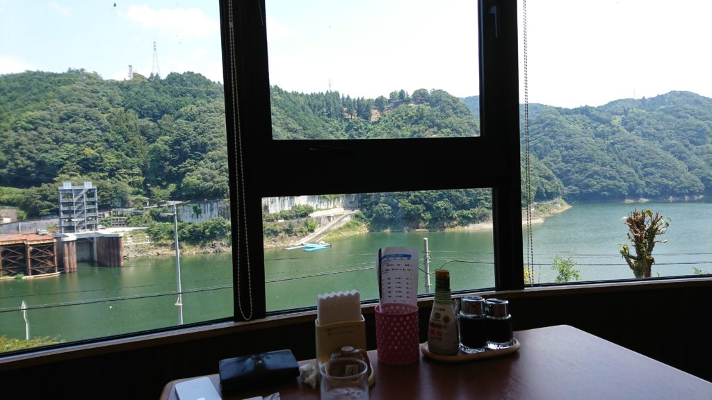 待ち時間は窓の外の雄大なダムを見ていましょう。