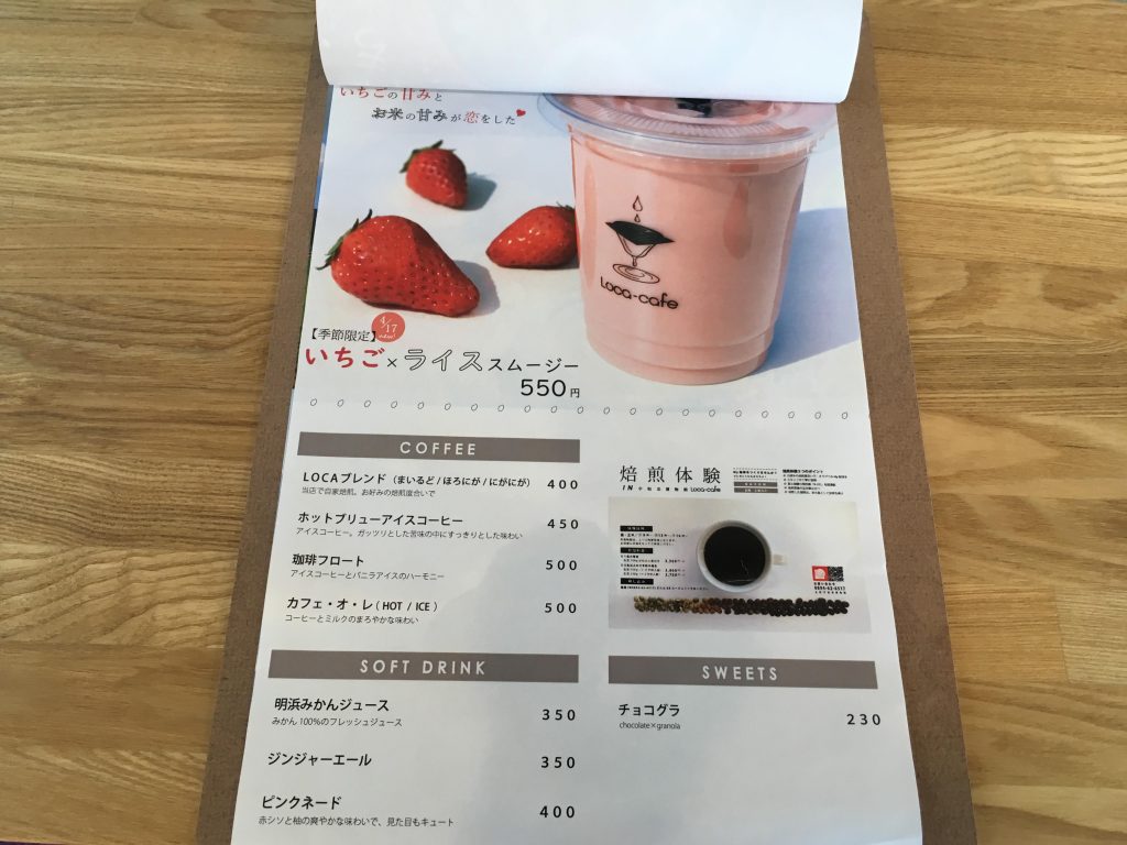 利き米が気になるも、お昼後だったので、季節限定の「いちご×ライススムージー」(550円)を注文。