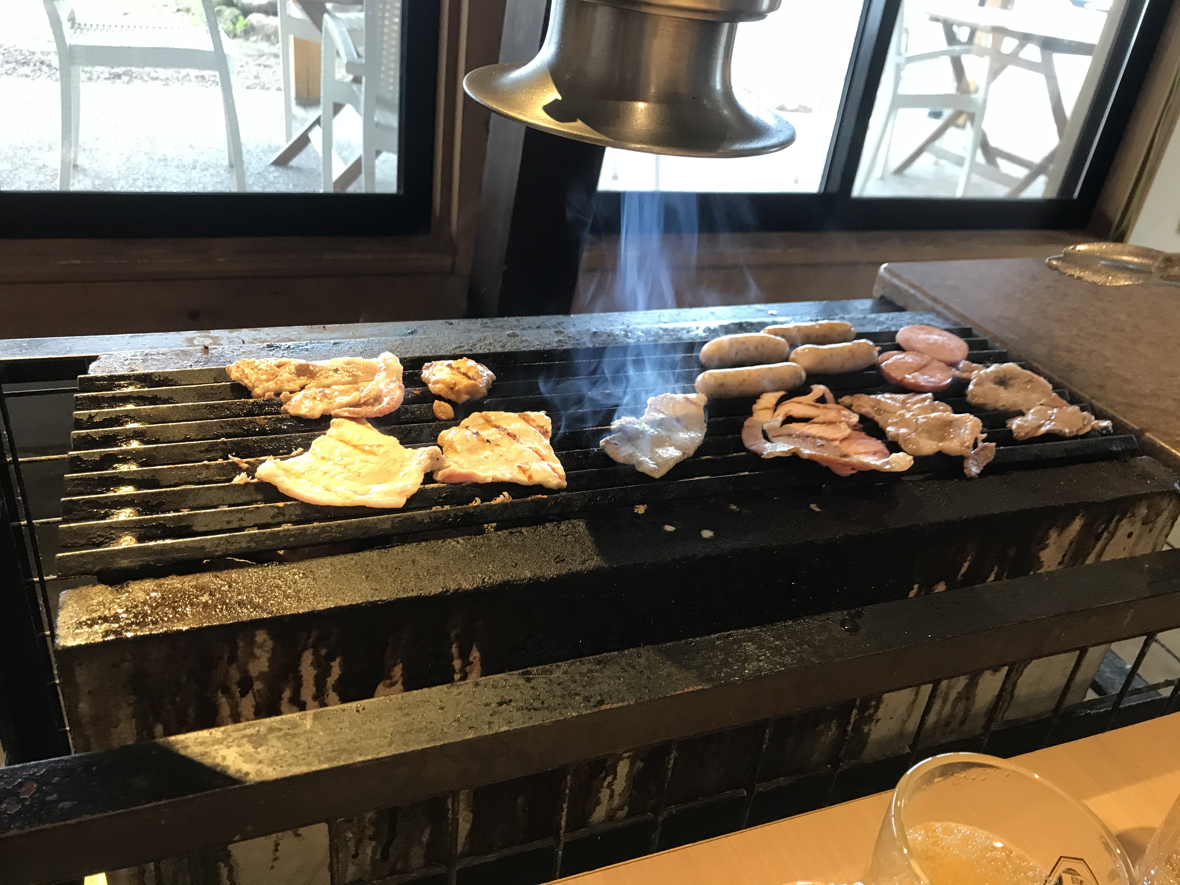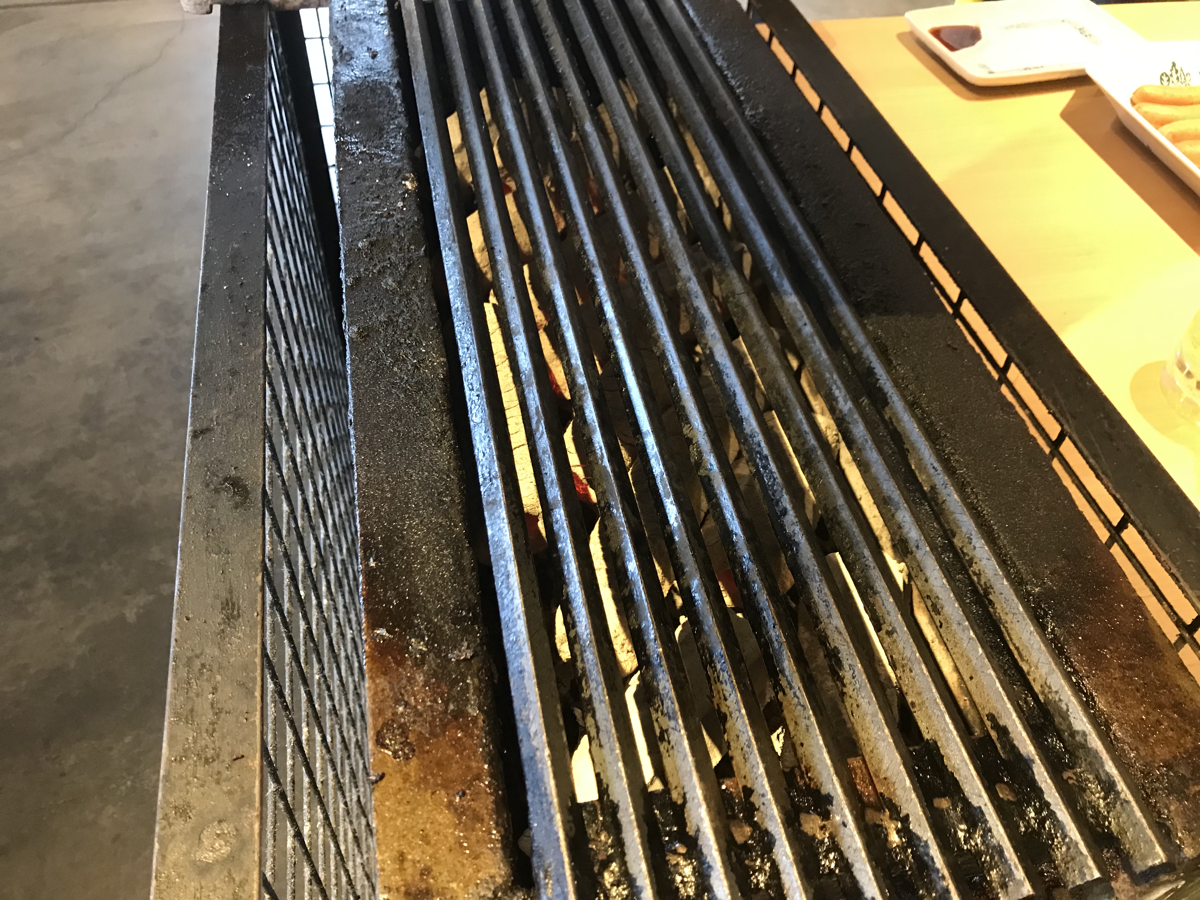 肉を焼く網はこんな感じで、下には炭が敷いてあります。いいですなあ。