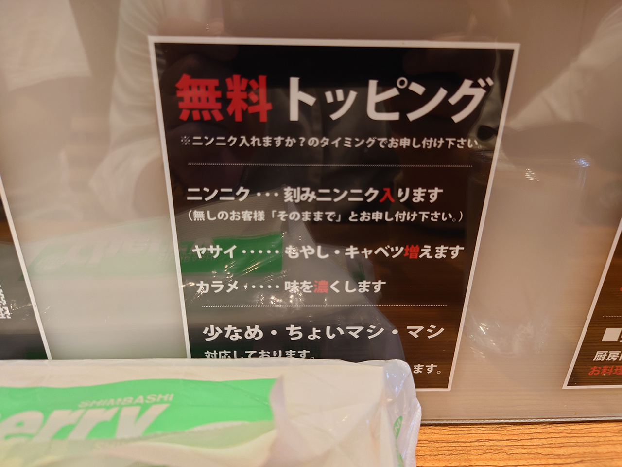 「ニンニク入れますか?」と聞かれますが、これは「ニンニクは入れるか入れないか。ヤサイの量はどうするか。カラメはどうするか」も聞かれていますので注意が必要です。