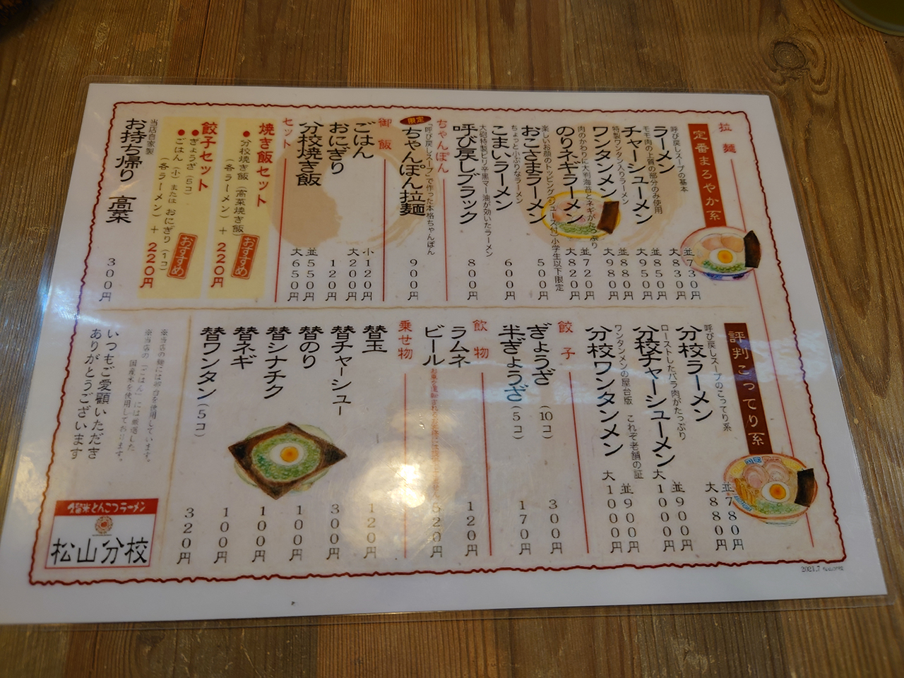 今回は店名も入っている「分校ラーメン」を注文しました。