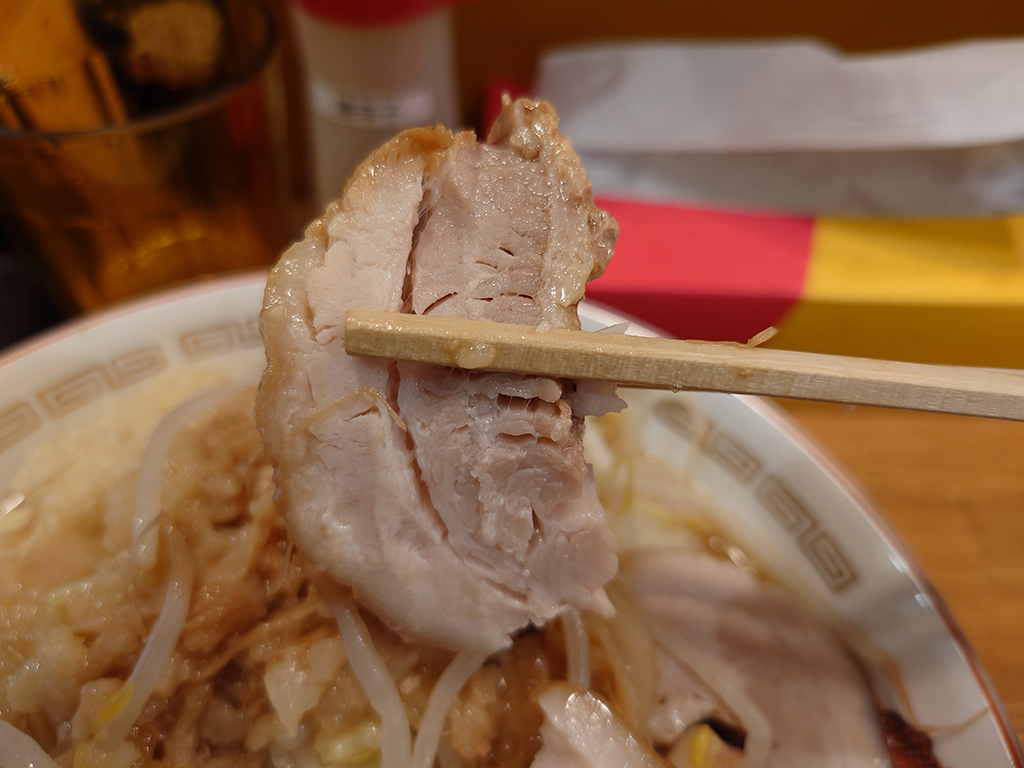 チャーシューはけっこう食べ応えのある厚さで、ちょっと硬めですが固すぎるって訳ではないです。
