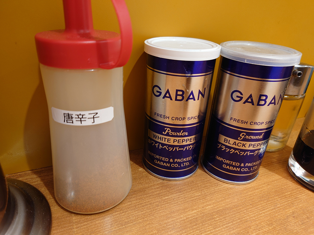 足りなければテーブルにあるカラメ(ラーメンたれ)を増量して味を好みに整えましょう。