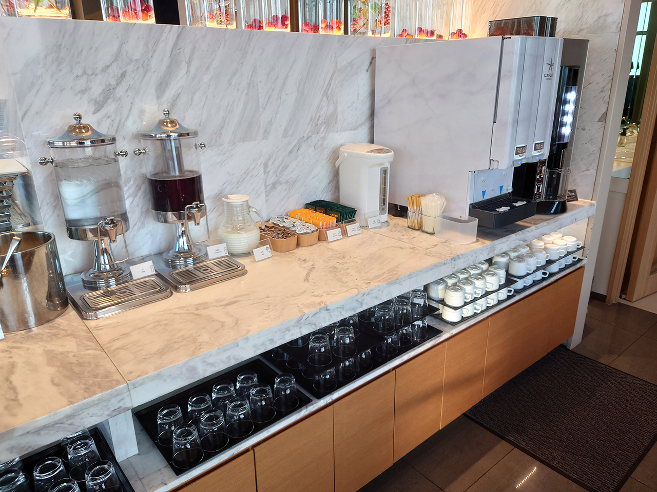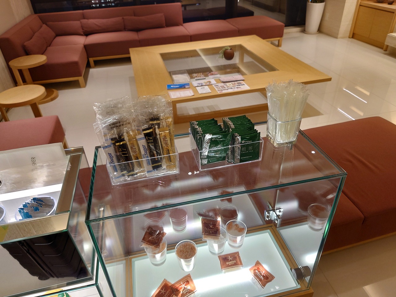 その先にあるフロントカウンターでチェックインをして、すぐ後ろにあるアメニティバーで必要なアメニティをピックアップします。