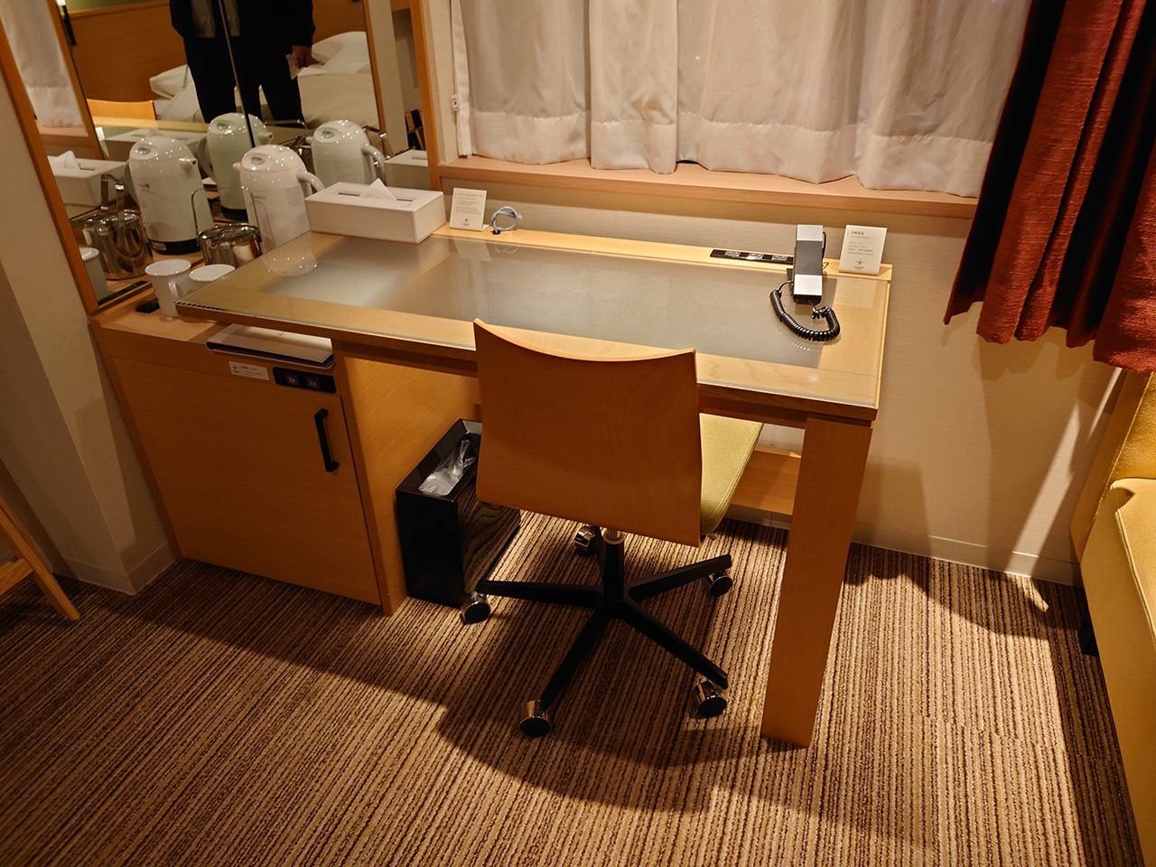 一般的なビジネスホテルだとソファはないですし、デスクも仕事をするには使い勝手が悪いサイズだったりすることもありますよね。