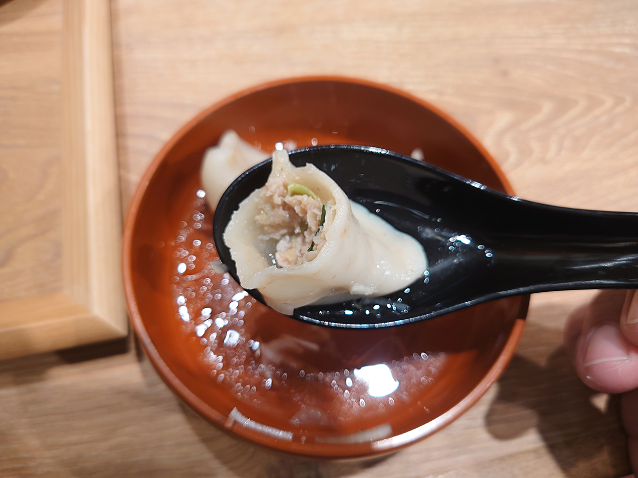 皮がもっちりとしているので水餃子のスープと混じることもなく、ぐちゃっとした感じがまったくないのが好印象でした。