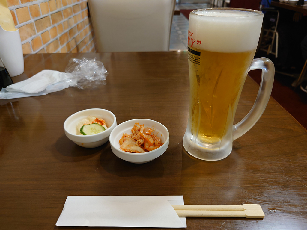 とりあえずポテトサラダとキムチをチョイスしビールを頂きます。