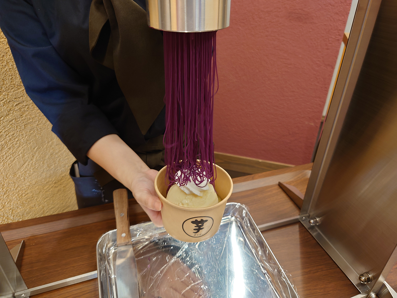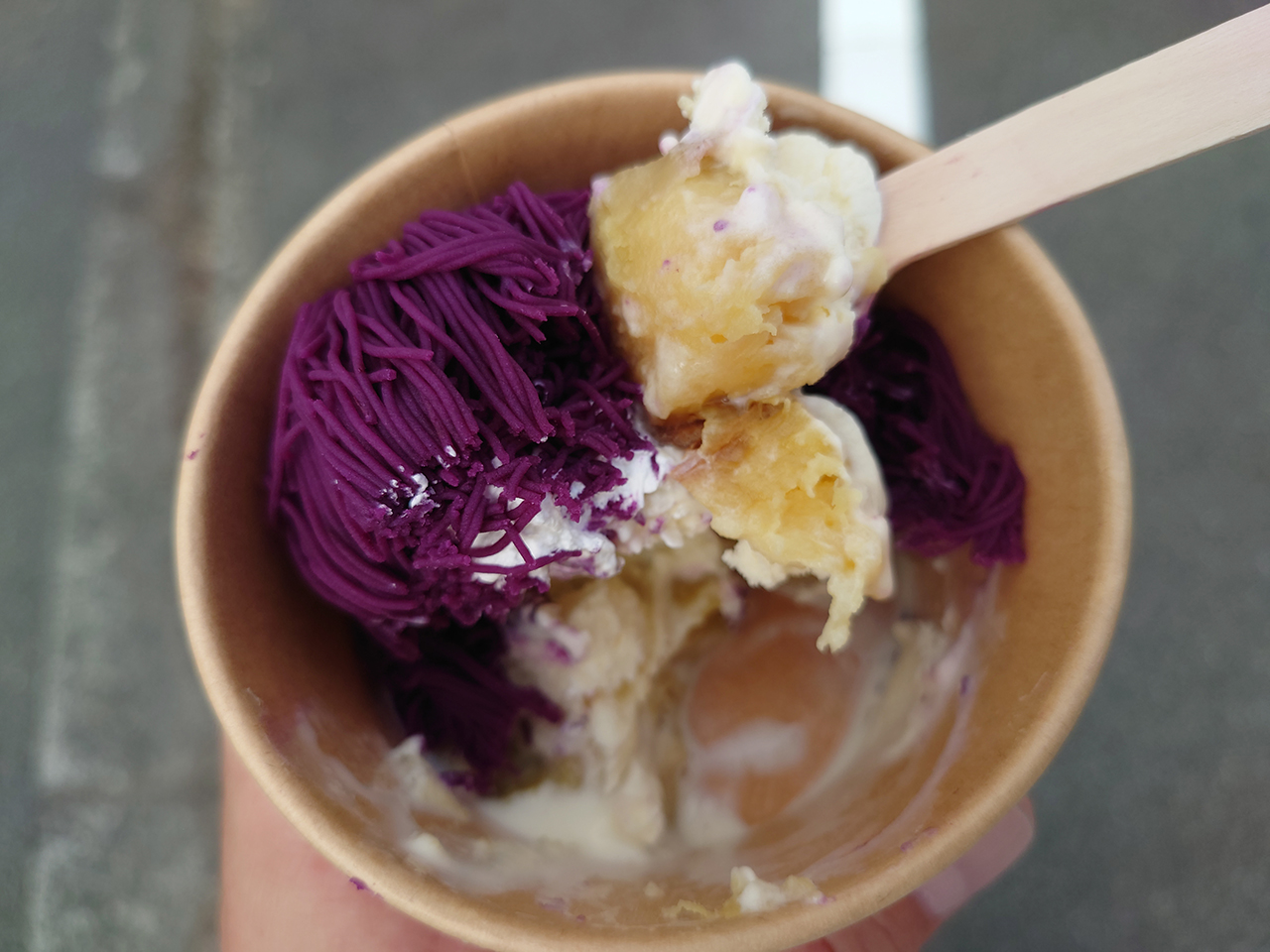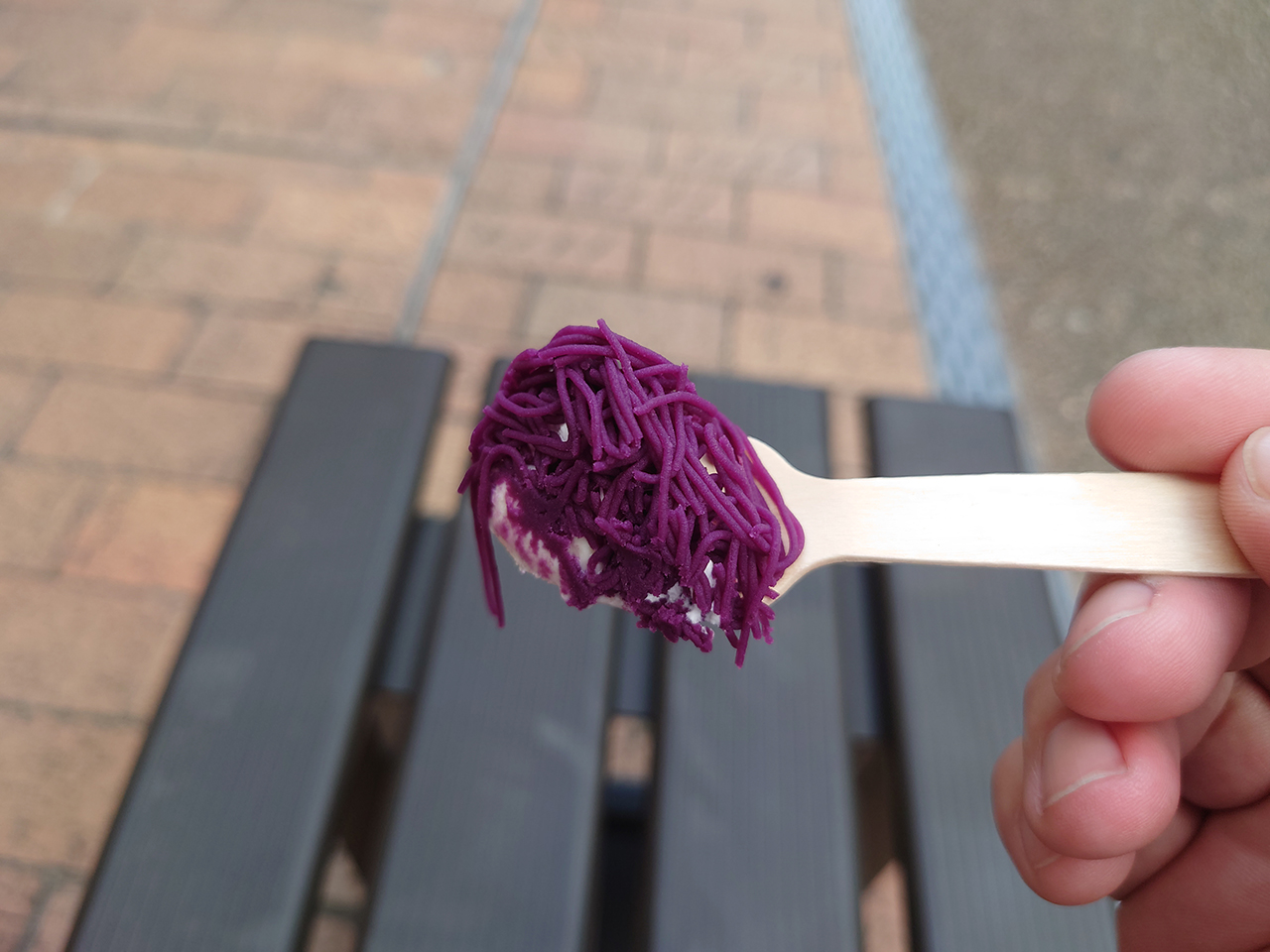 実際のとこ、絞った紫芋も、バニラアイスも、焼き芋も絶妙にマッチングしているんです。