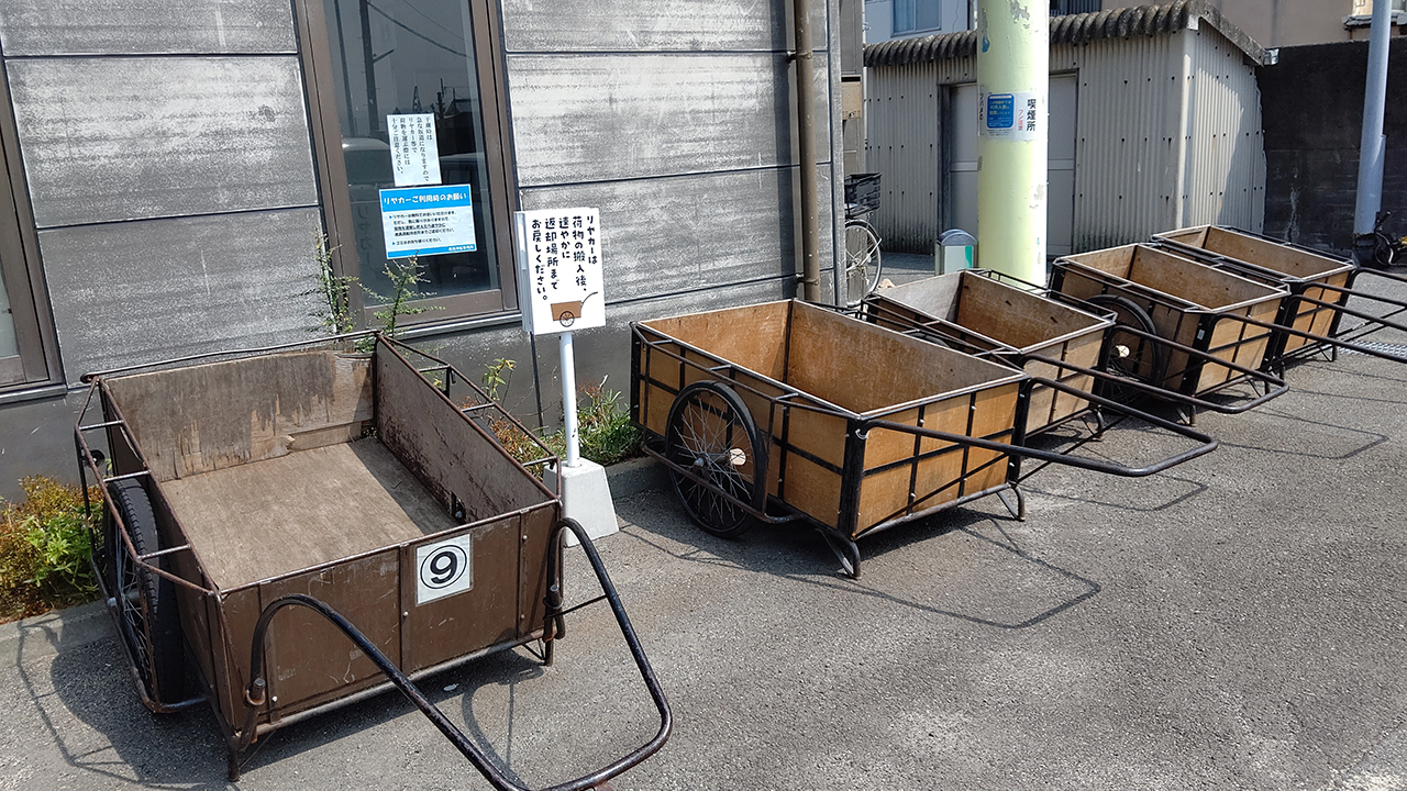 大きな荷物がある場合、渡船乗り場にリヤカーがあり自由に無料で使うことが出来ます。