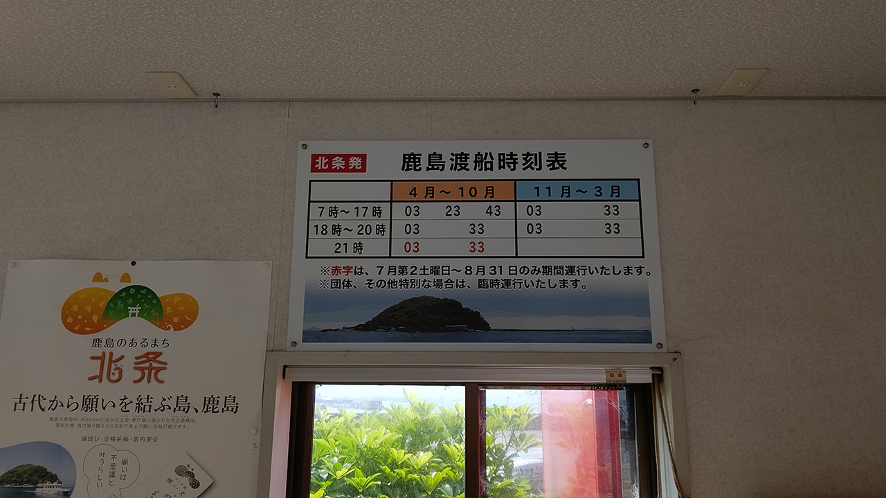 まずは伊予北条駅から徒歩でも来られる鹿島公園渡船乗り場へ。