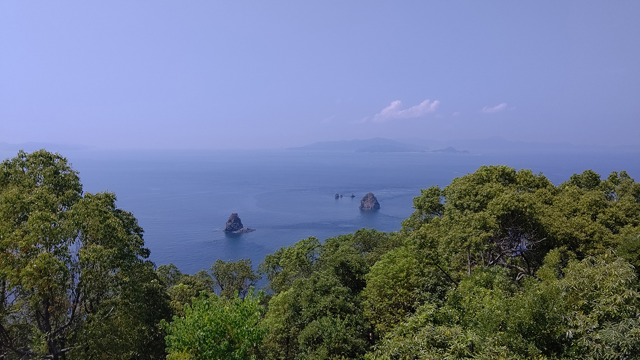 手前の島は左が千霧島、右が男小鹿島といい、そのちょっと奥に見える小さい島が玉里・寒戸島といいます。
