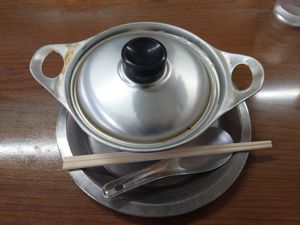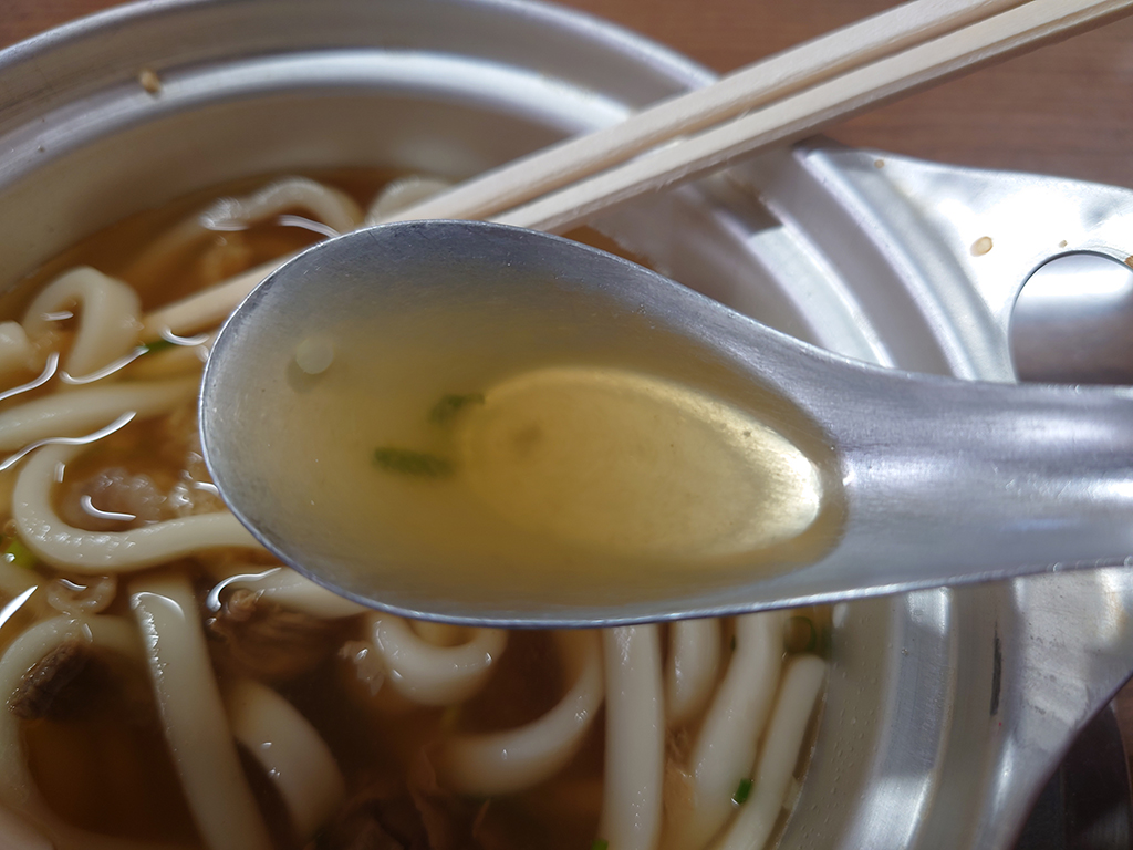 松山式の鍋焼きうどんはアルミのお鍋とレンゲが特徴的ですよね。