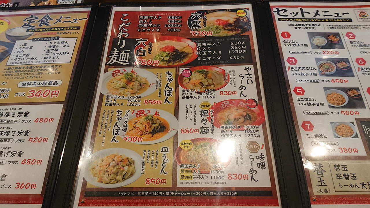 店舗外観から豚骨系のラーメン屋さんであることはわかっていましたので、やはりここは名物の「六黒」を注文。