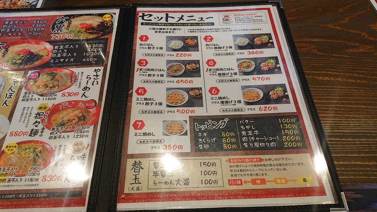 豚骨ラーメンは細麺のため、できあがりまでの時間はセットメニュー側に委ねられます。