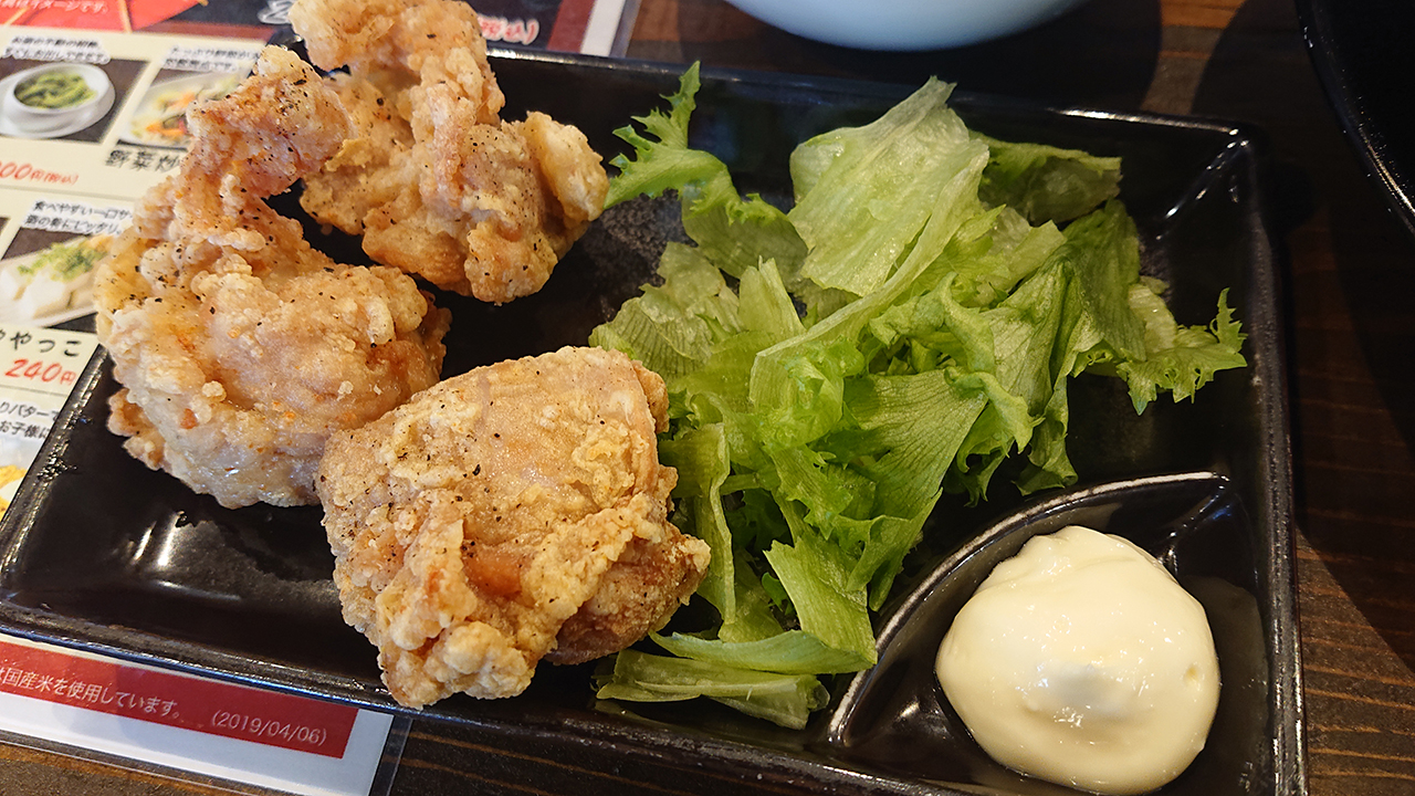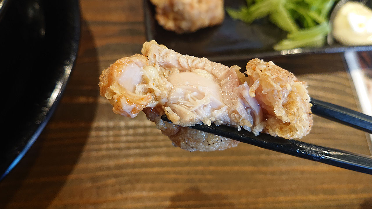 ジューシーな唐揚げは衣にブラックペッパーが混ざっていて、ピリッとしたアクセントが素敵です。