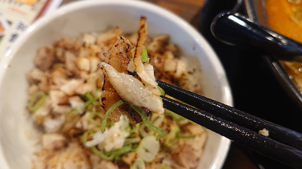 いろいろ悩みましたが、「炙り肉肉ごはん」というパワーワードに気付いてしまうともうそれしか目に入らず、セットの4番(唐揚げ付き)を選択して注文。