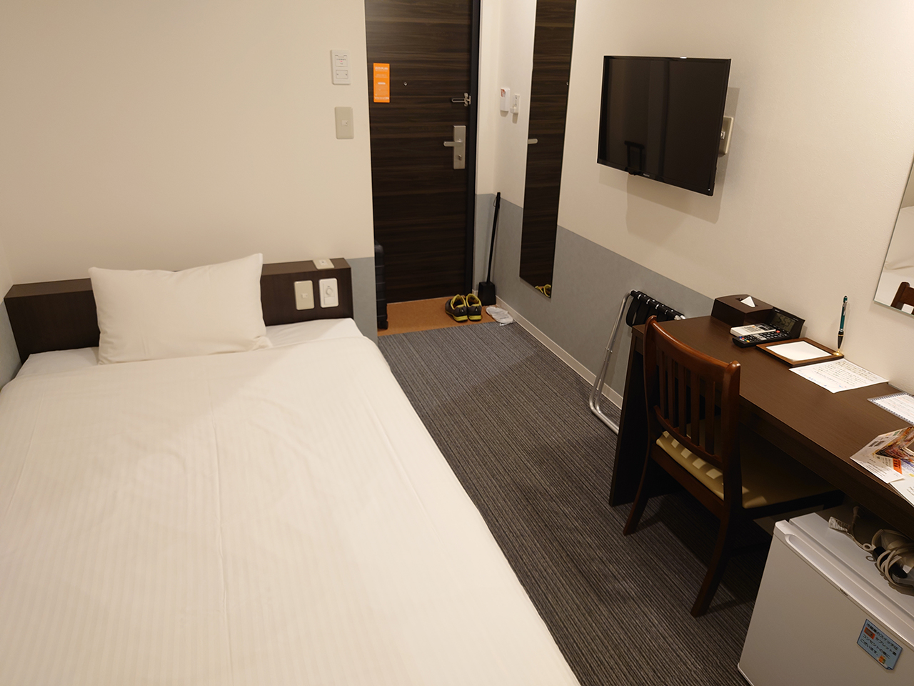 至ってシンプルなビジネスホテルですが、コンセントがあっちこっちにあったり、冷蔵庫やWi-Fiなど、ほしい物は一通りそろっています。