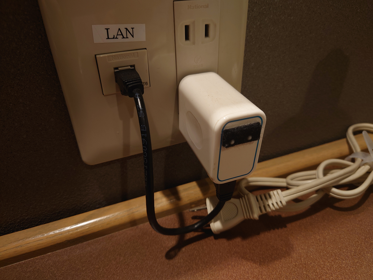 そしてビジネスホテルにありがちな、ルーターが廊下にあって部屋によってはWi-Fiとっても弱い問題も、有線LANを無線に変換する装置が各部屋にある方式のため快適です。