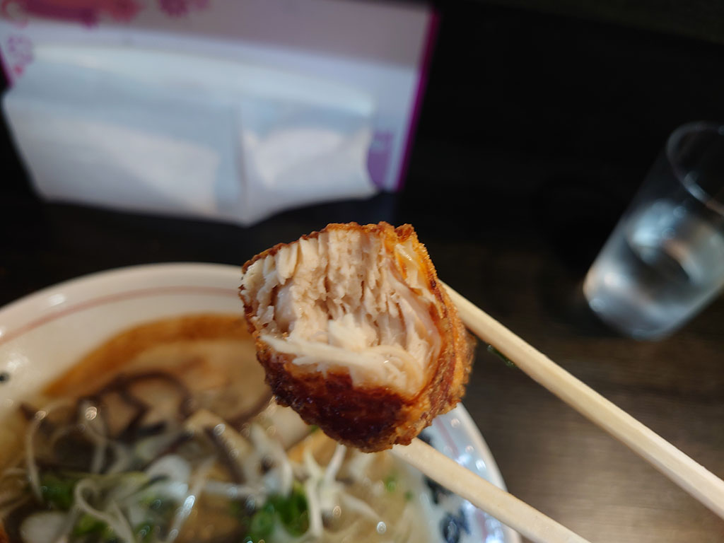 ギュッと締まった胸肉は、ジューシーとはまた別ですが、パサパサしているというわけでもなく、ガッツリ鶏肉を食うぜ!といった感じでしょうか。