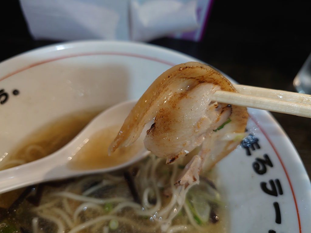 薄切りであぶられたチャーシューは、ともすれば魚介である煮干しと喧嘩をしそうですが、まったくそんなことはなく、それでいてしっかり肉だなと思う出来です。