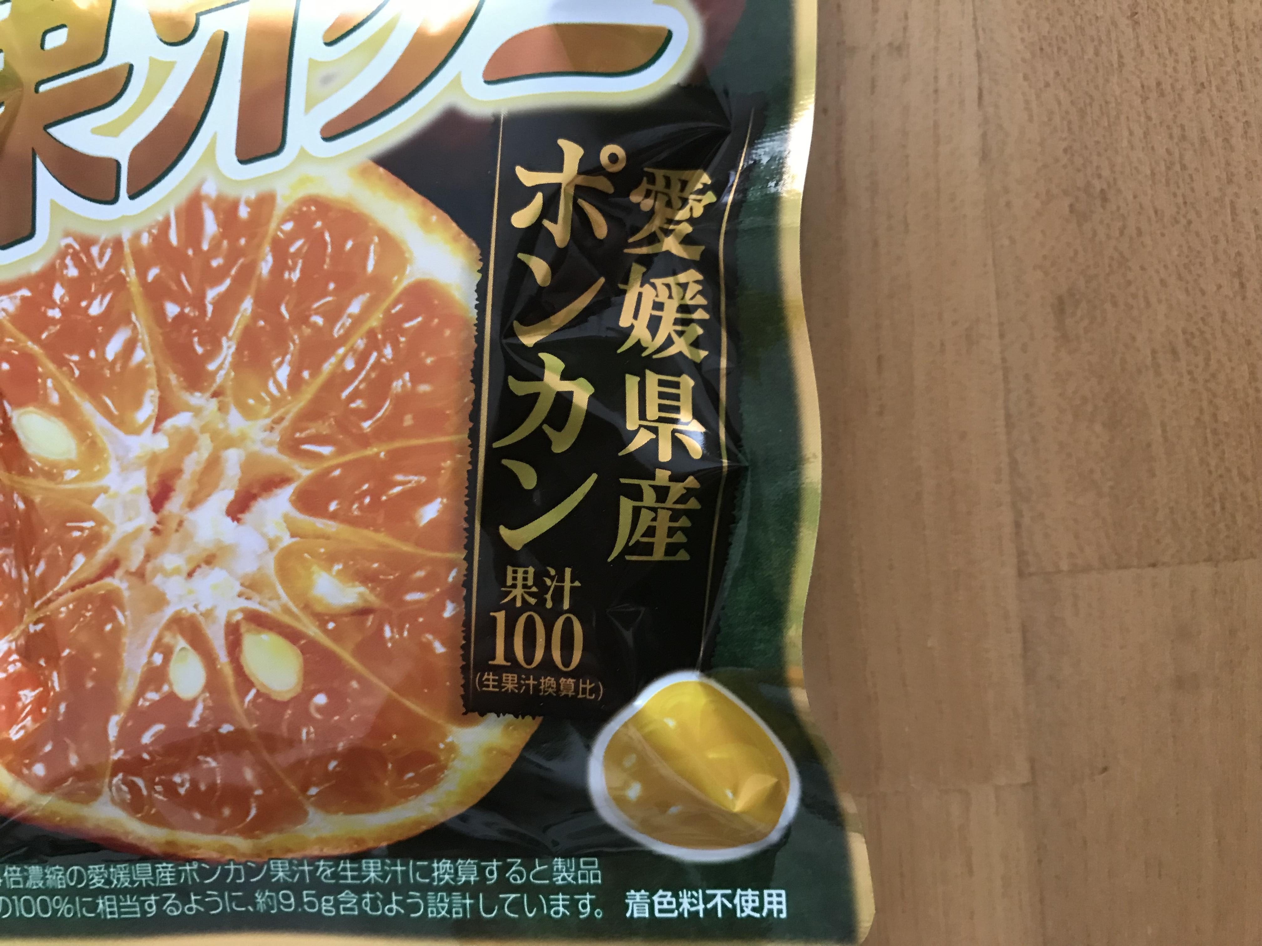 果汁グミといえば、皆さんご存知の㈱明治から出されている定番商品ですが、まさか愛媛県産ポンカン味を出すとは!