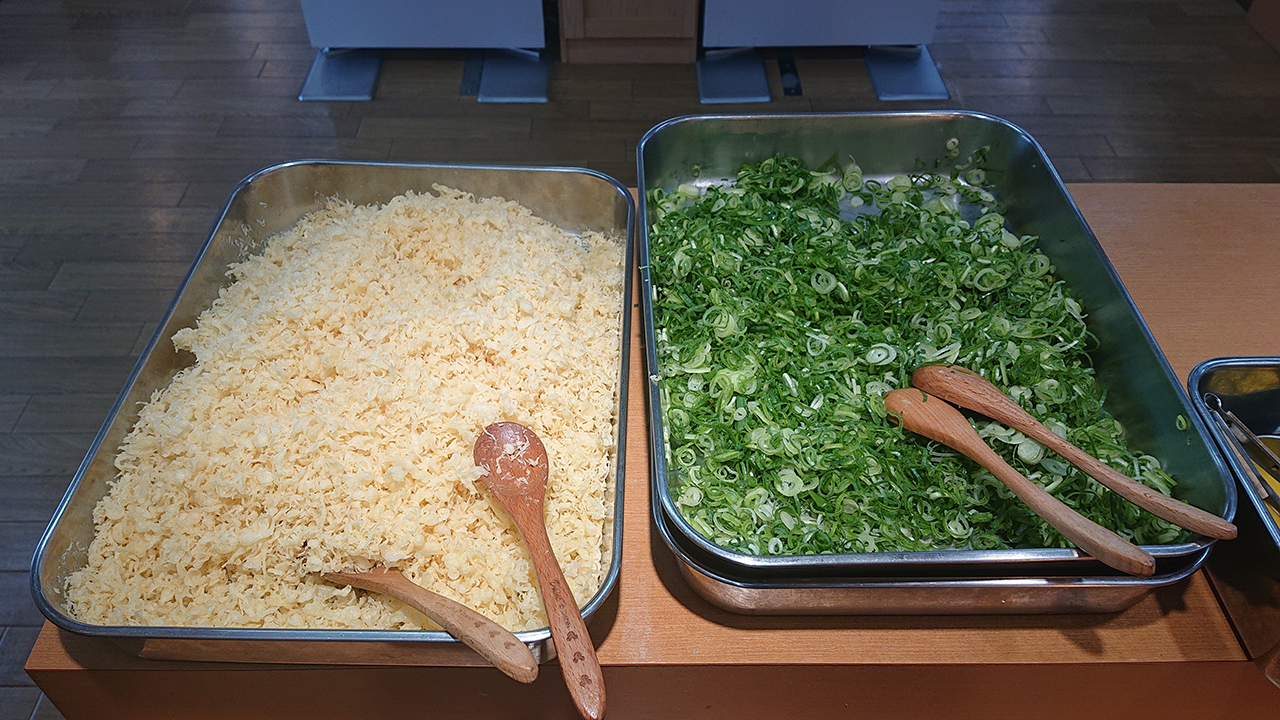 あ、天かすとネギはうどんに入れ放題ですよ。
