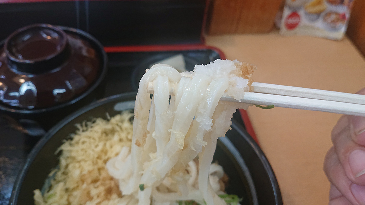 醤油をかけたら歯ごたえ抜群のうどんです。