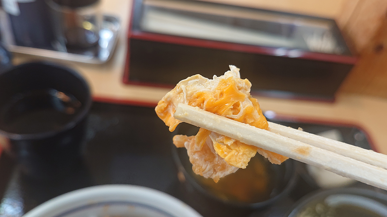 かつ丼は割り下が少なめのようで、卵で綴じているのですがサクサクした食感が残っています。