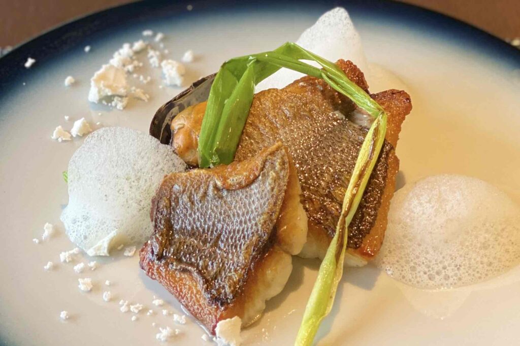 ソースが泡立っているおかげで、香ばしく焼きあがったお魚の食感をそのままに、ふんわりと優しく風味を加えます。