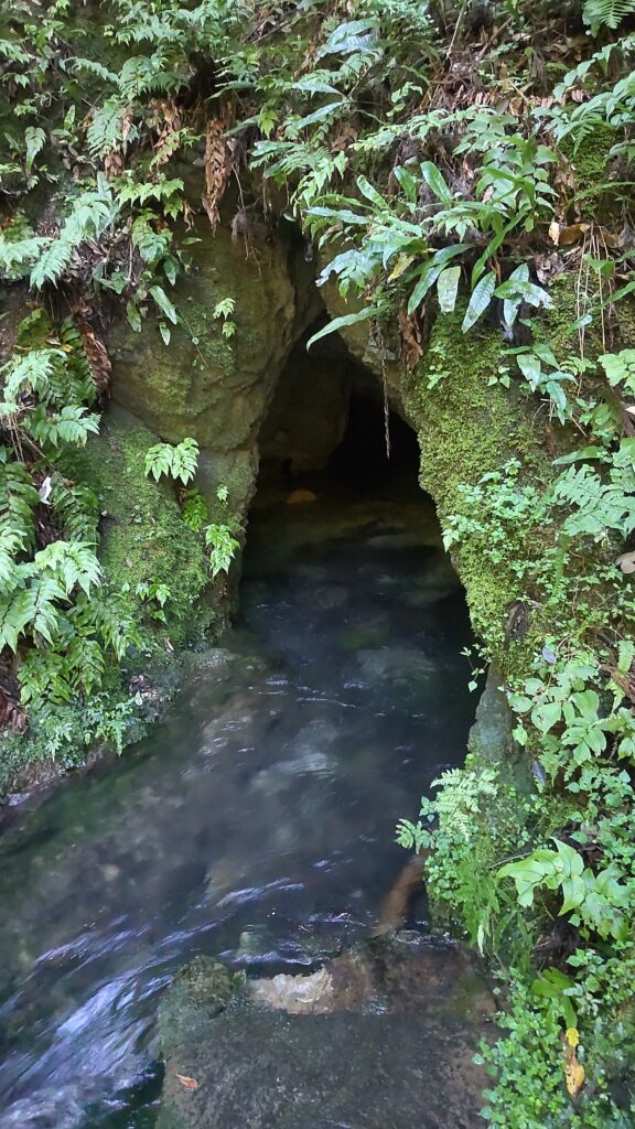 少し奥には洞窟があり、そこから湧水が流れていました。