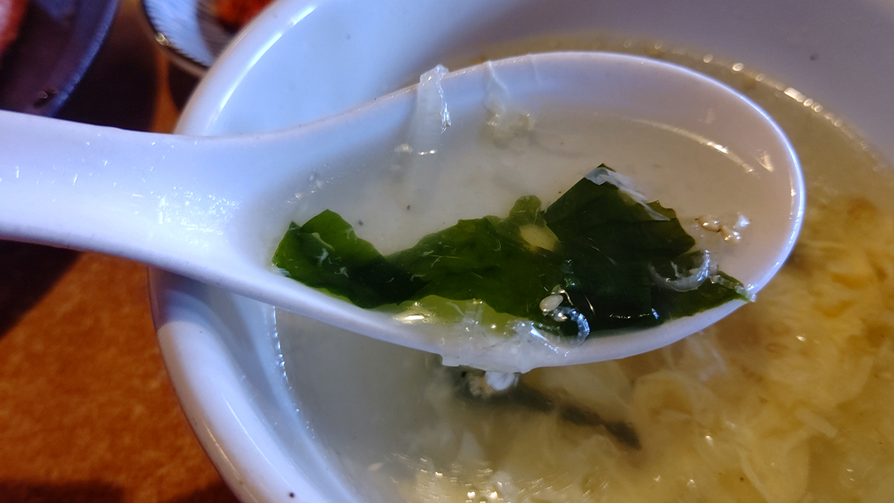 ちなみにどのセットも、ごはん、サラダ、キムチ、スープが付いてきます。