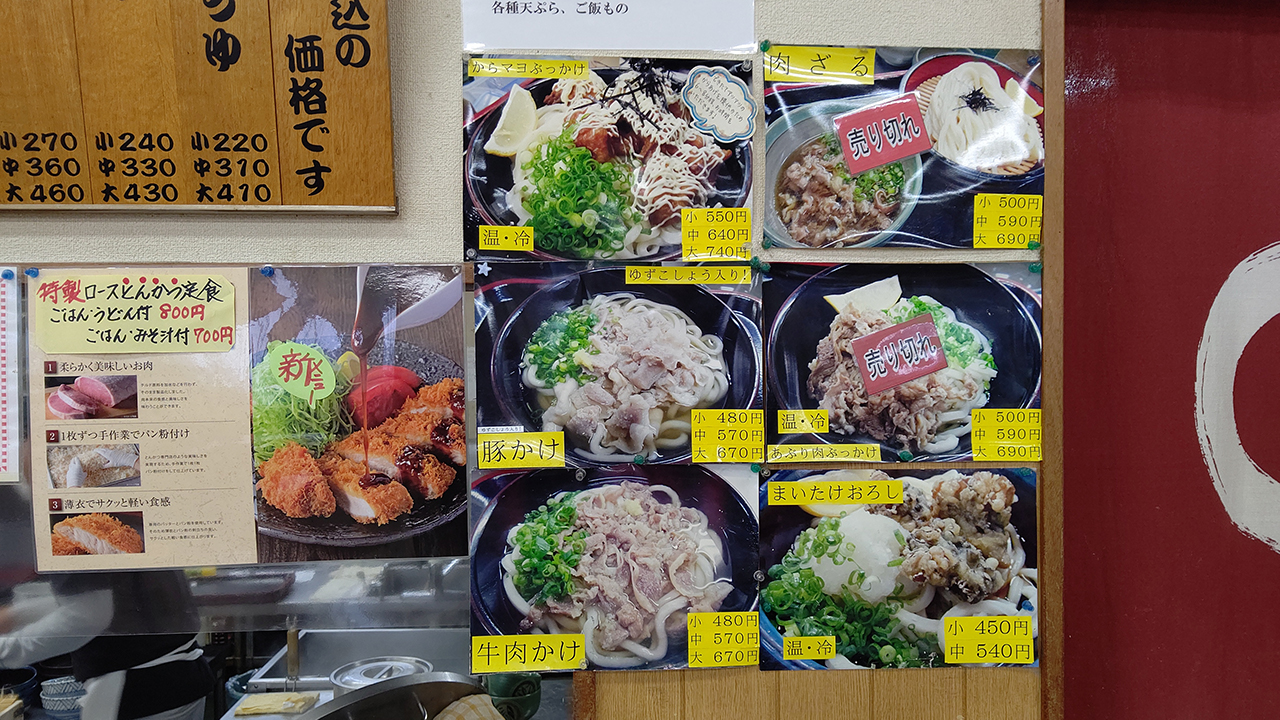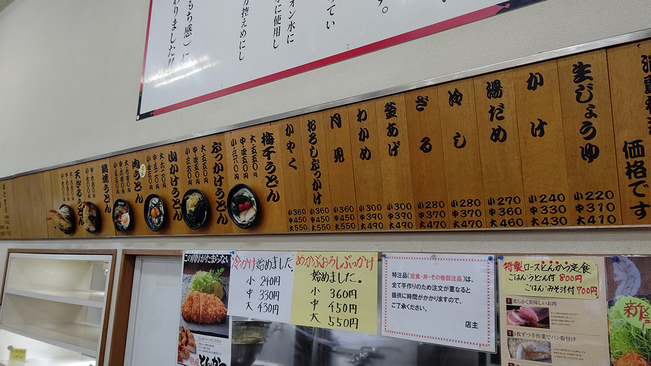 普通のうどんメニューはこんな感じで、いずれもリーズナブルな価格帯です。