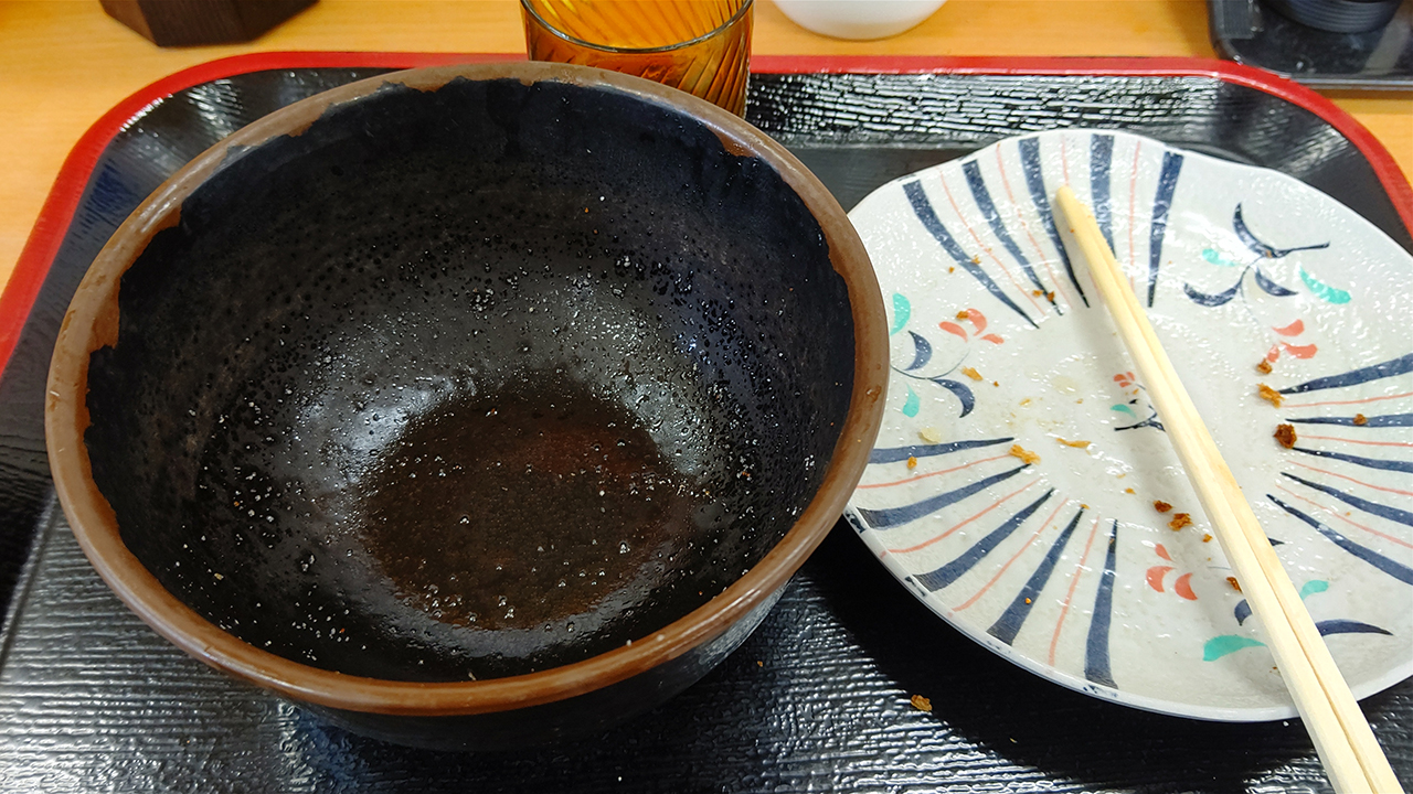 だしはいりこをふんだんに使っている(と思う)優しい味で、徐々に肉汁と混ざってきて甘くなってきます。