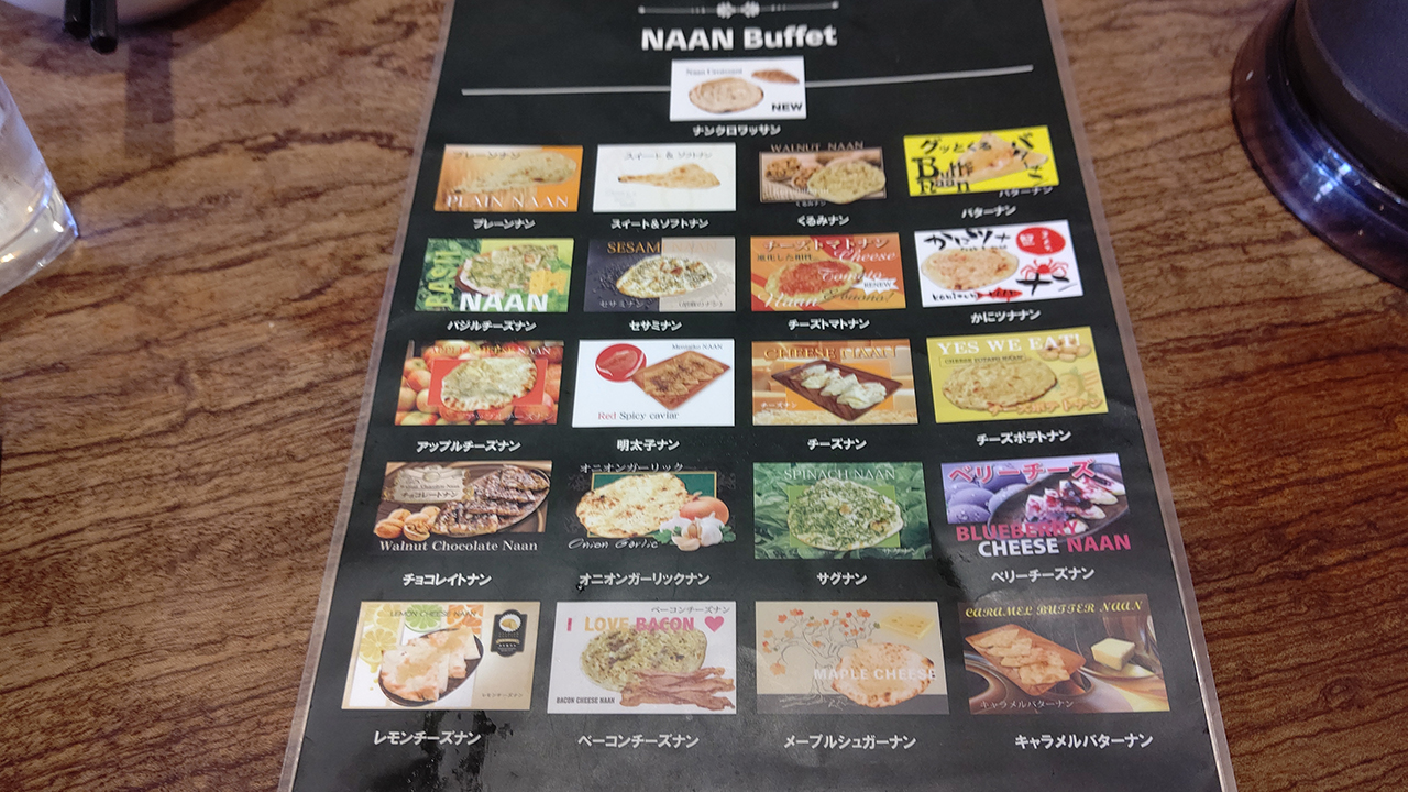 メニューを見るとナンは全部で21種類あるようですが、常時全種類があるわけではなく、次々にいろいろな種類のナンが出てくるシステムです。
