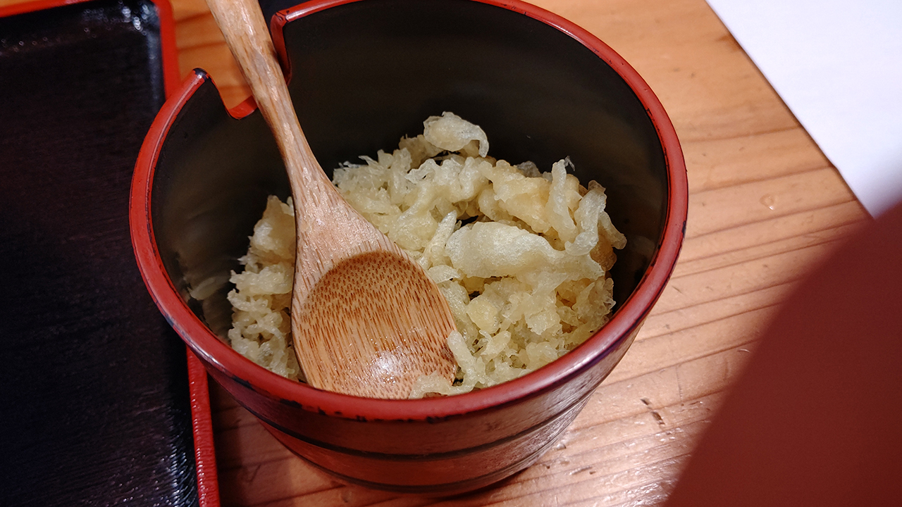 テーブルには天かすや七味などもありますので、お好みに合わせてどうぞ。