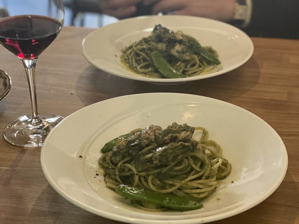 旬の牡蠣をたっぷり使ったジェノベーゼ!美味しくないわけがありません。バジルソースとパスタが絡まり合って醸し出すハーモニーに今が旬のぷりぷりの牡蠣が合わさり、ペロリと完食〜〜!!