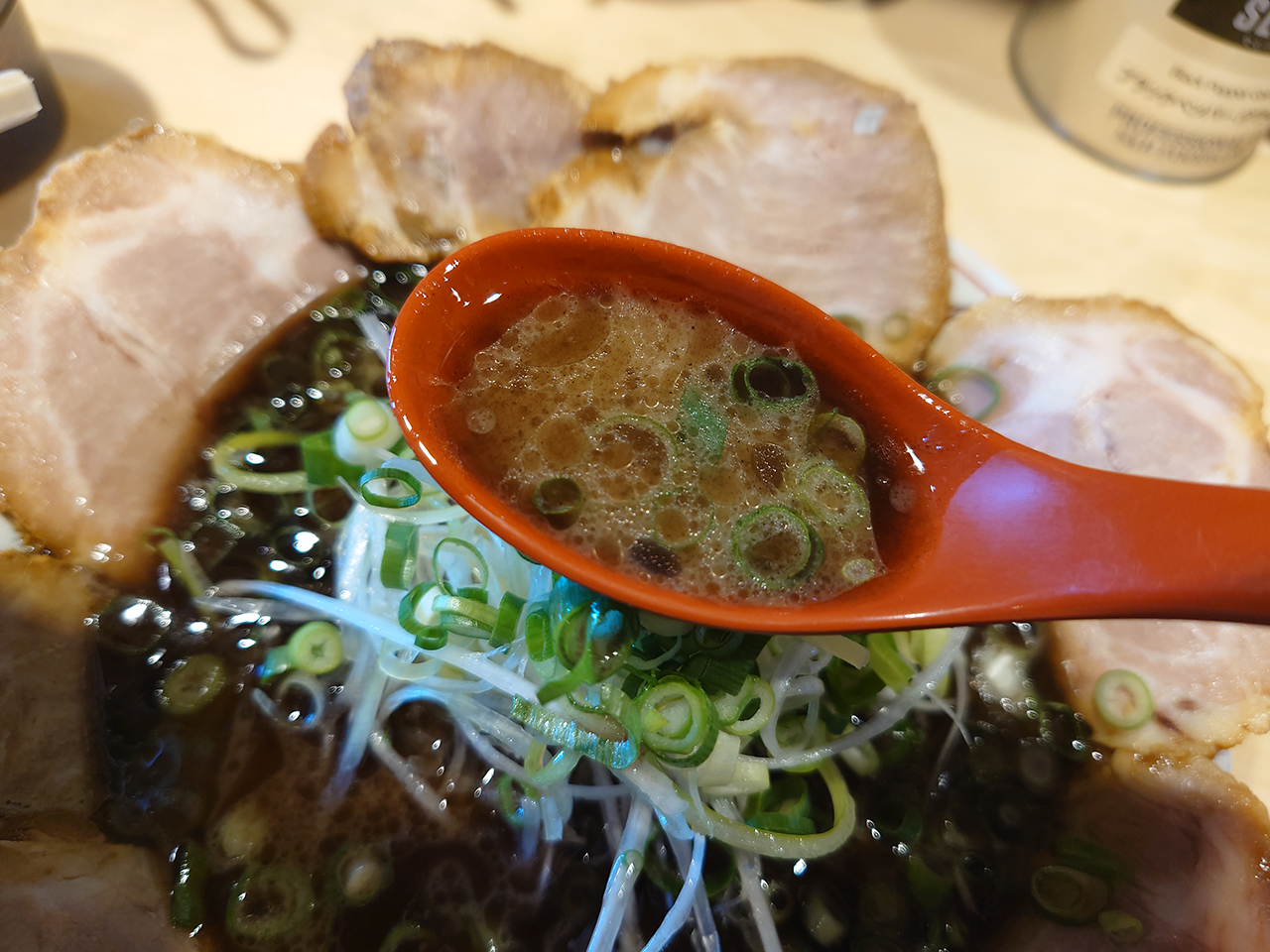 スープはすごく黒く濃厚なのですが、コッテリはしているもののギットリではありません。