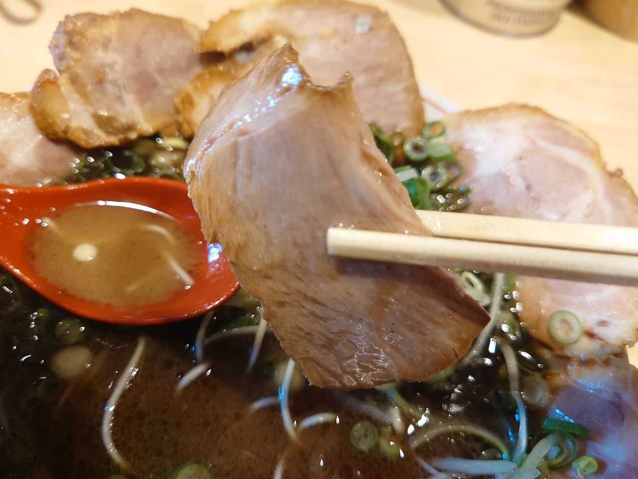 薄く開花した花(※チャーシューのこと)はしっかりと肉感を残しながらもぜひ一口でいってください。
