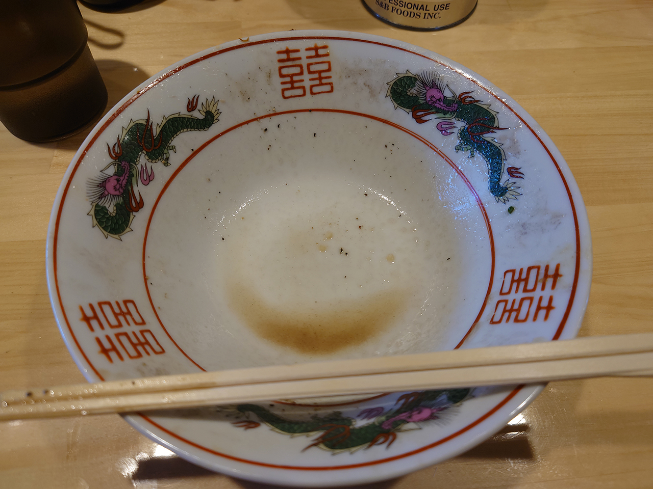 ちゃーしゅーめんでは枚数もたっぷりあるので、バランスよく食べないと麺の方が先になくなってしまうかもしれません。