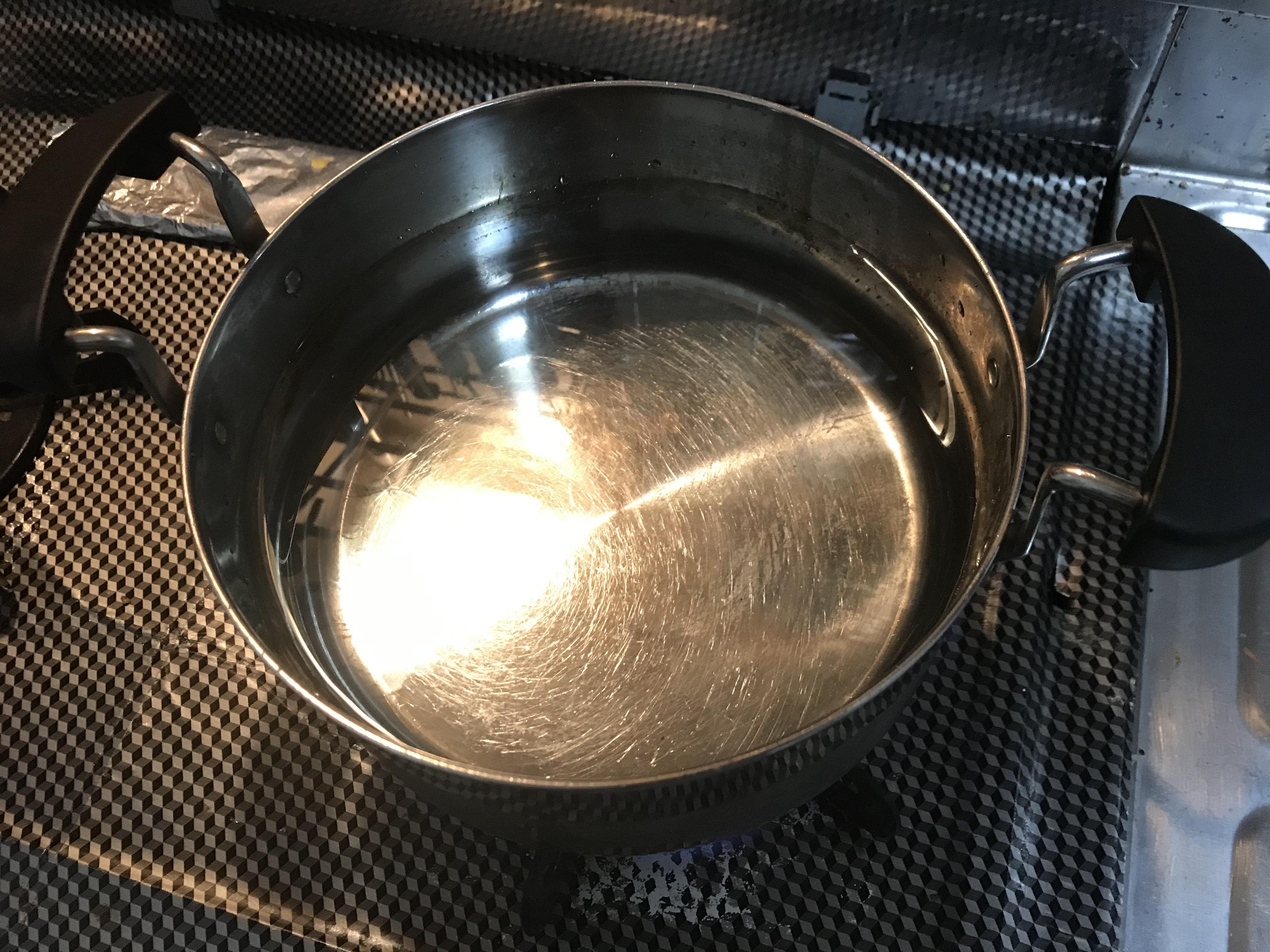 先ずは水+酒を沸かします。(写真は多めに作ってます。)