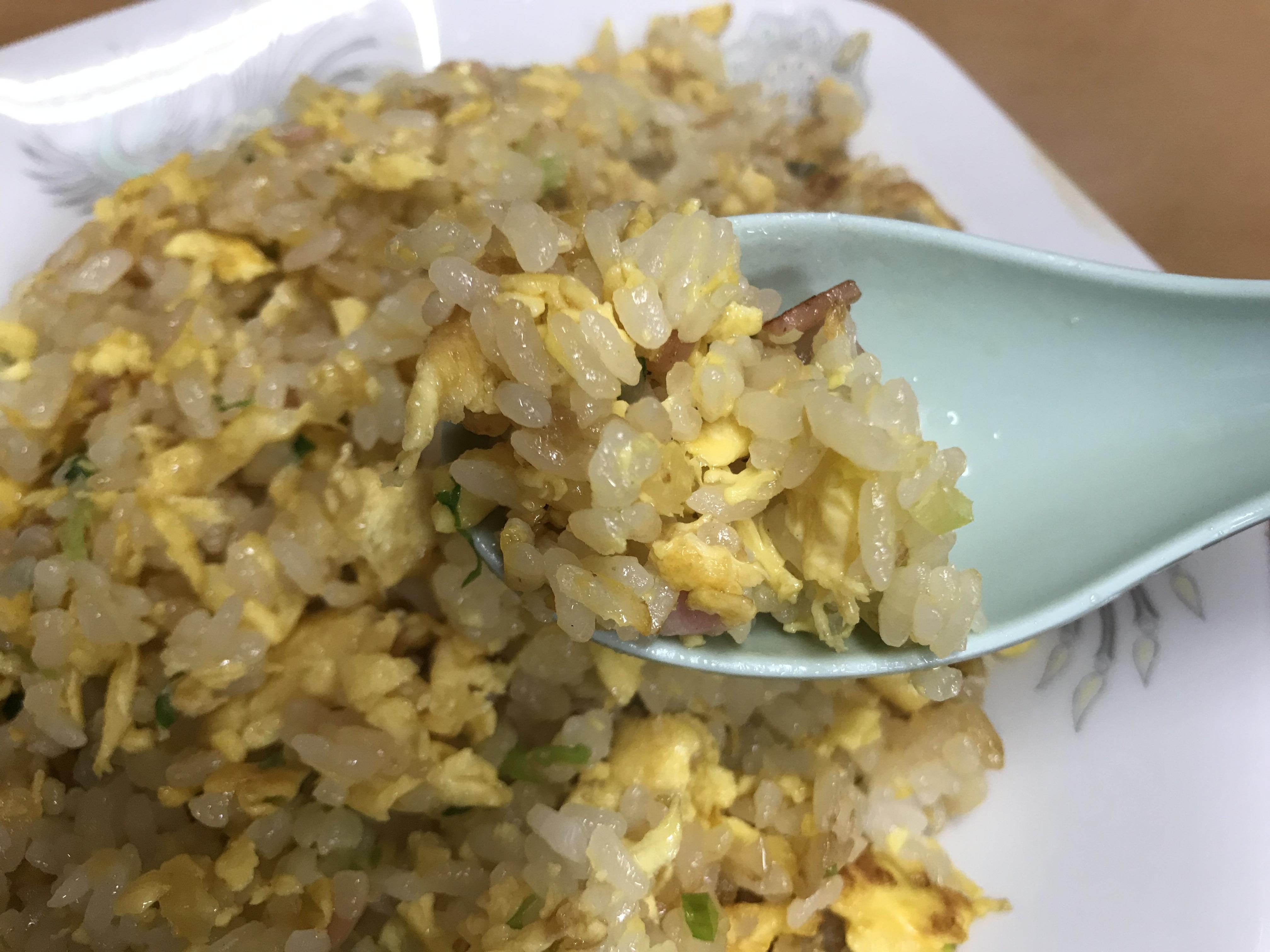 パラパラとしたご飯、多めに入っている炒られた卵のビジュアル。いい匂いでノックアウトされそう。