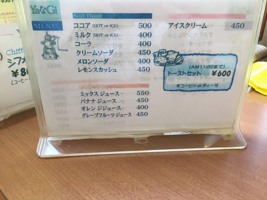 ・トーストセットは午前11時まで
